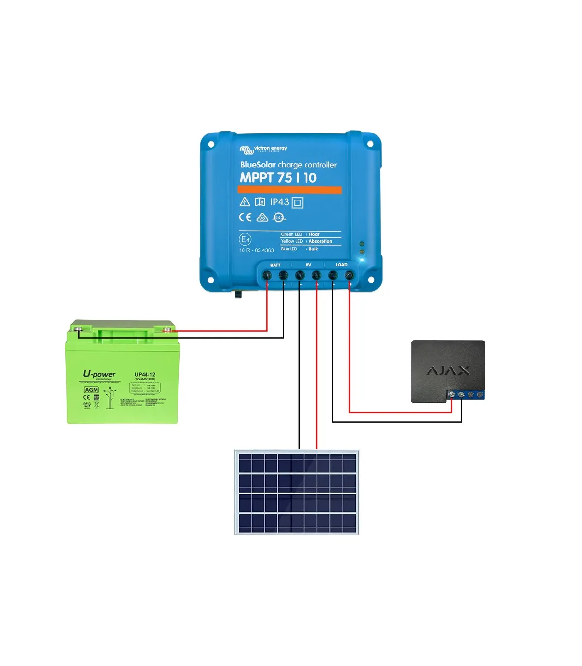 - Wiring for connection of a 12V backup battery (up to 85 Ah)