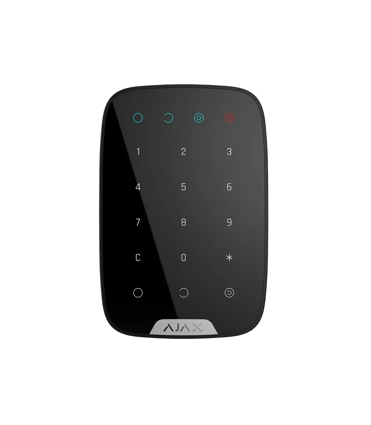 KeyPad is a wireless touch keypad used to arm and disarm the Ajax security system. Controls the security modes when entering a numeric code on the keypad panel. The indication informs about the security status, problems with sensors, or a break in communication with the hub. Installed in the room near the entrance doors for quick access to the keyboard.