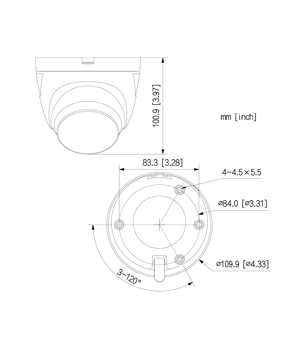- Fixed lens 2.8mm (108°x58°x127° (HxVxD)), F1.6.