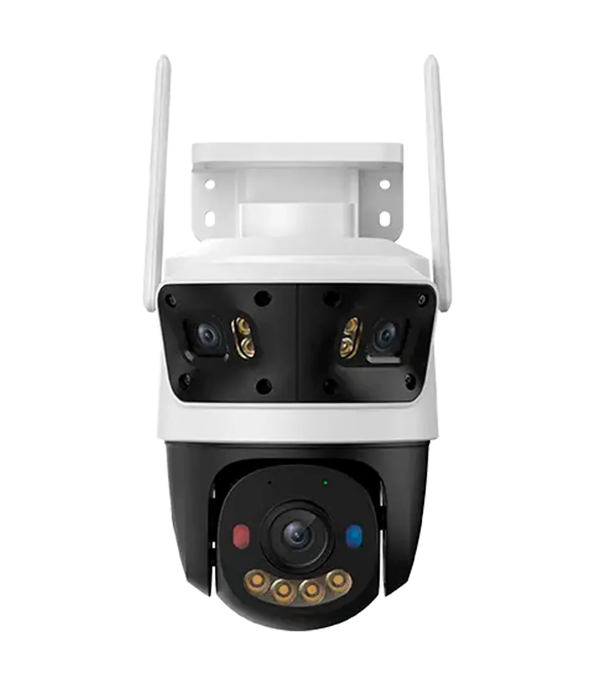 - IR + Full‑Color night vision and active deterrence: Infrared LEDs provide zero‑lux black‑and‑white imaging up to 30 m, while white LEDs enable full‑color night images when needed. A powerful blue‑red strobe and integrated siren offer immediate, remote‑triggered or automated deterrence to interrupt suspicious activity before escalation.