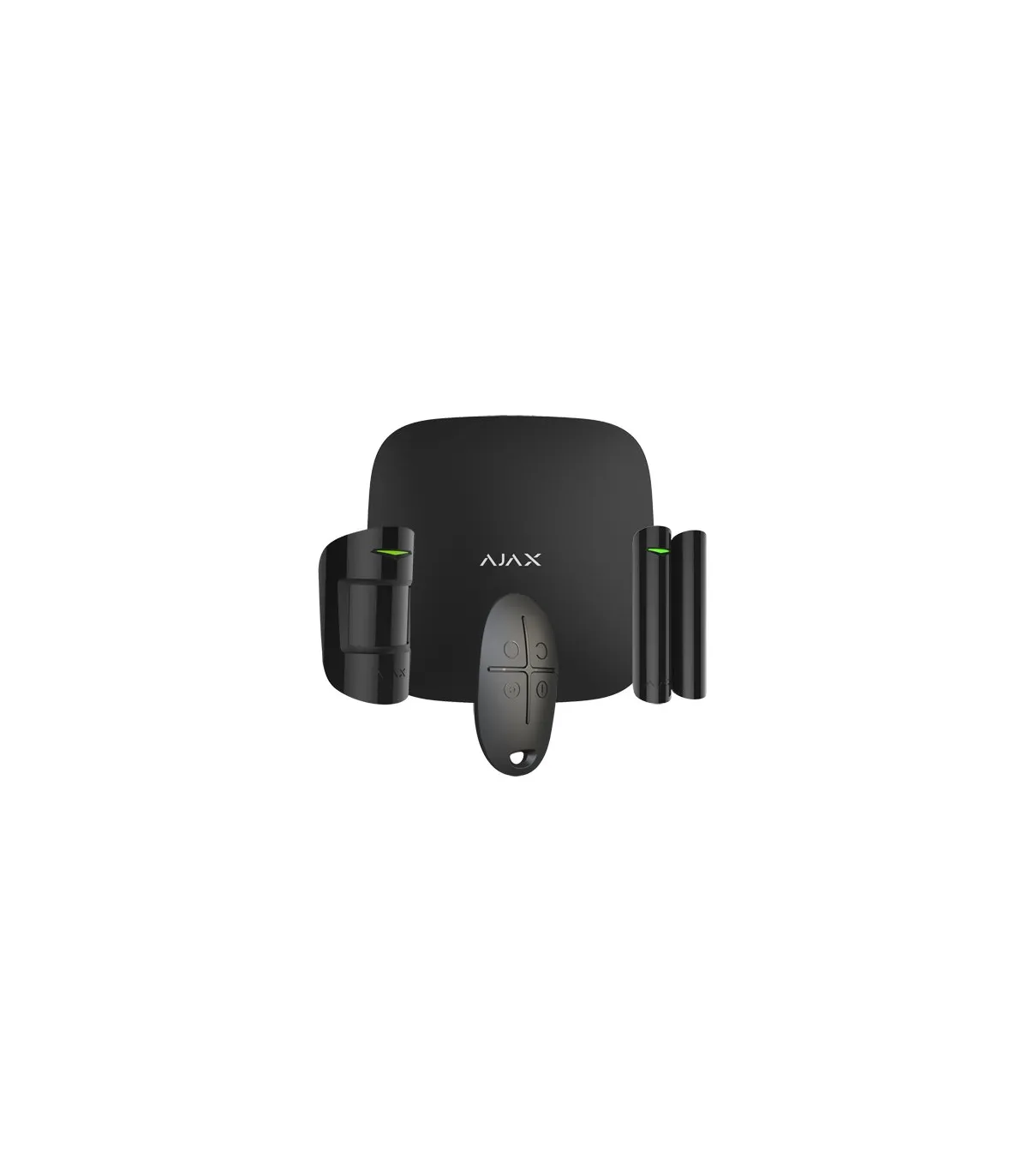 El kit incluye el panel de control Ajax Hub AJ-HUB-B, un contacto magnético AJ-DOORPROTECT-B, un detector de movimiento AJ-MOTIONPROTECT-B y un mando a distancia AJ-SPACECONTROL-B.