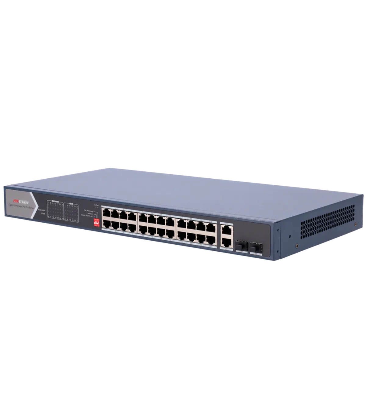 Switch PoE Hikvision4 puertos RJ45 FE + 1 puerto Gigabit RJ45/SFP4 Puertos PoE+ 802.3af/atHasta 60w de Potencia PoE TotalPoE Extendido / PoE Watchdog / Port IsolationInstalación en pared/sobremesa