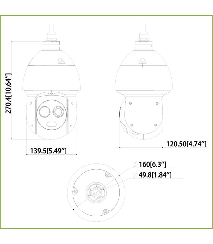 Dahua TPC-SD2221-B3F4 - Caméra IP Dôme PTZ Hybride AI 256*192 3.5mm + 2M 4mm IP66 12V PoE+ AUDIO E/S