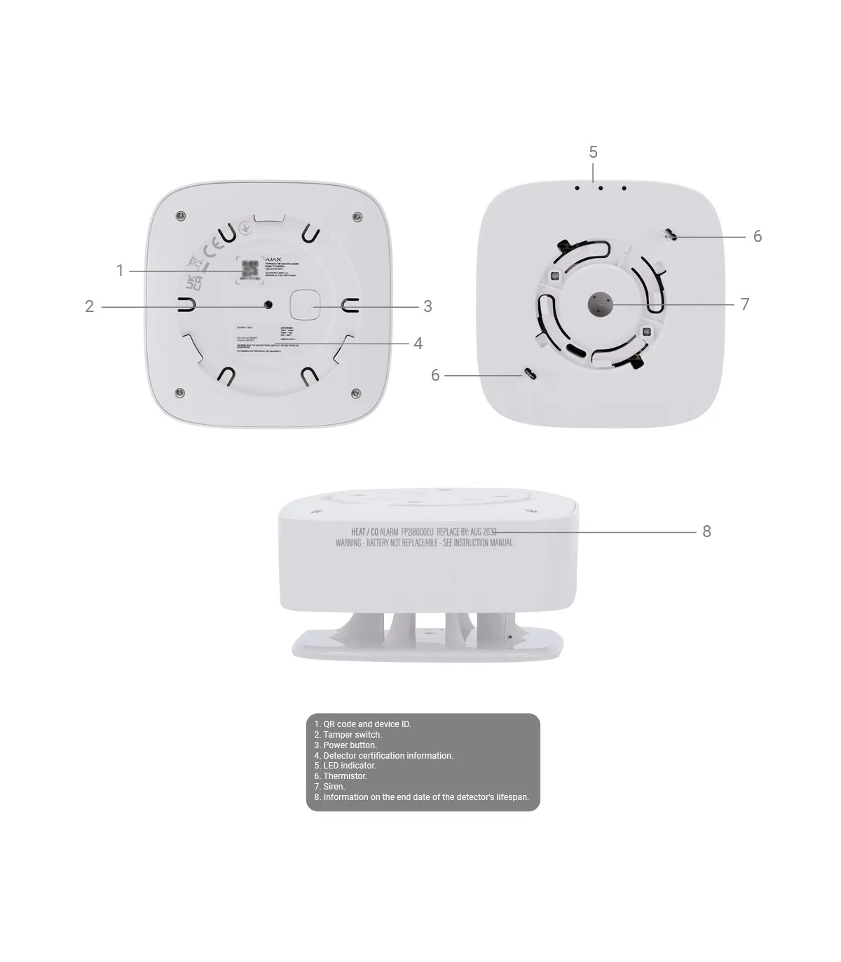 Détecteur de COBatteries remplaçablesSans fil 868 MHz JewellerSirène intégrée 85 dBCertifié EN 14604