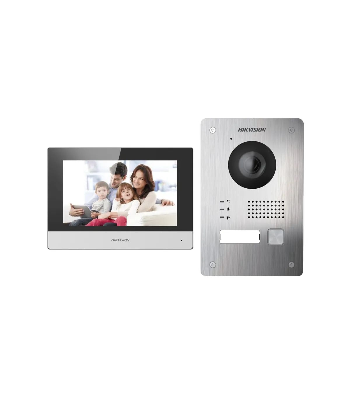 Kit de vidéophoneTechnologie 2 fils avec TCP/IP & WiFiPlaque et moniteur | Permet 16 moniteurs supplémentairesApplication mobile avec P2P | Relais internes dans le moniteurMontage en surface | IP65