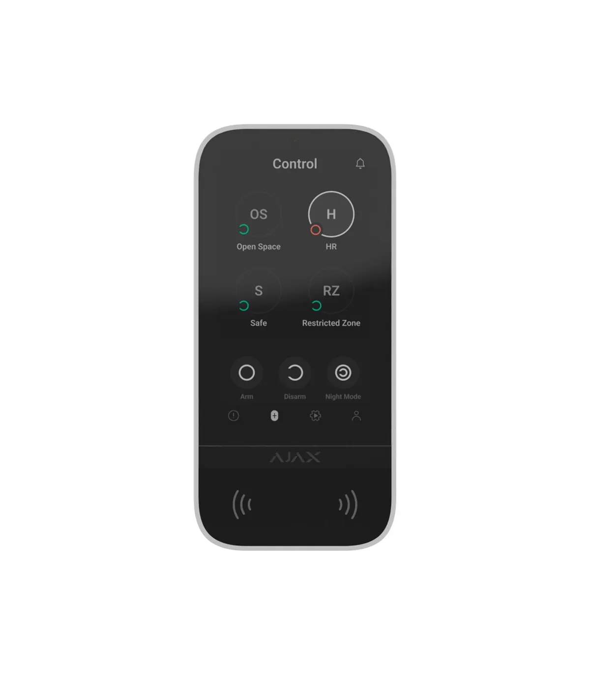 | Controle de autenticação | - Códigos (de teclado ou usuário) - Leitor RFID para chaveiros e cartões Ajax - Celular através de Bluetooth |