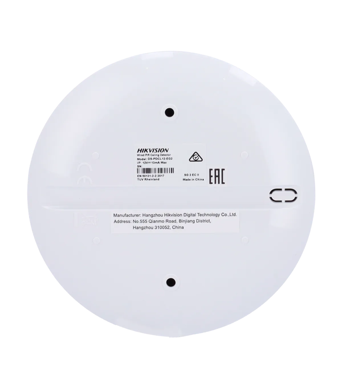 Detector cabeado de teto Hikvision alcance 12 m resistências EOL selecionáveis DS-PDCL12-EG2