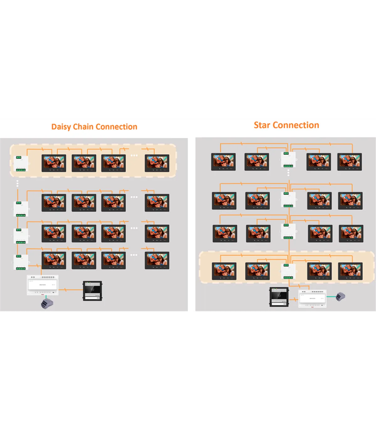 Os equipamentos de 2 fios se comunicam e alimentam através de cabos de cobre convencionais (chamados fios) e distribuidores, permitindo reutilizar as instalações convencionais que já possuem esse tipo de cabeamento.